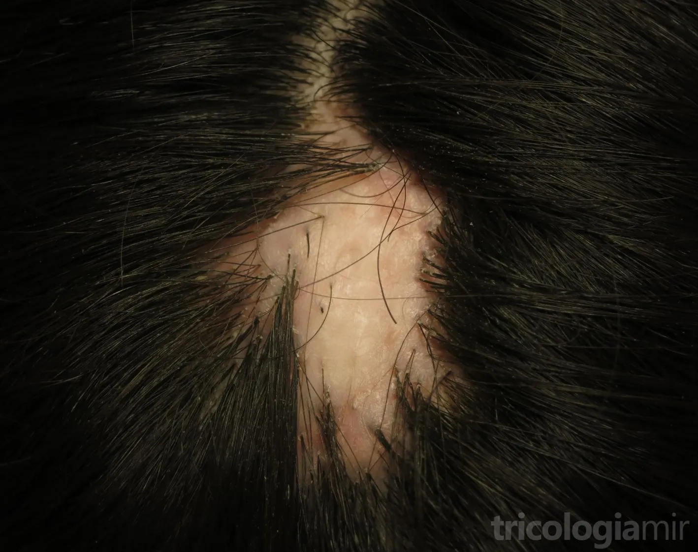 El liquen plano pilar (LPP) es un tipo de alopecia cicatricial no infrecuente en nuestro medio y que afecta a mujeres y hombres de mediana edad en forma de placas alopécicas en zona superior-central del cuero cabelludo.